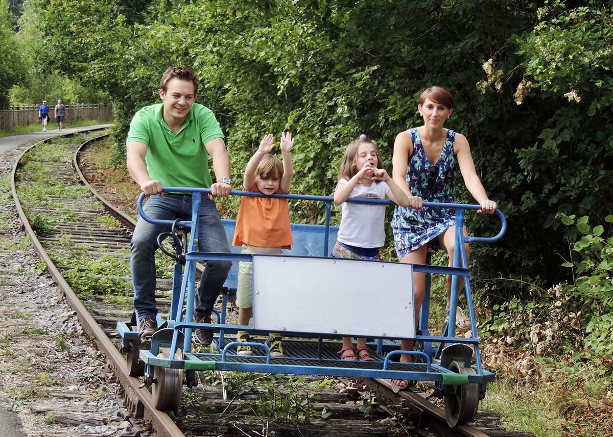 Une activité sportive... des plus originales ! (© Page Facebook Les DRAISINES de la Molignée)