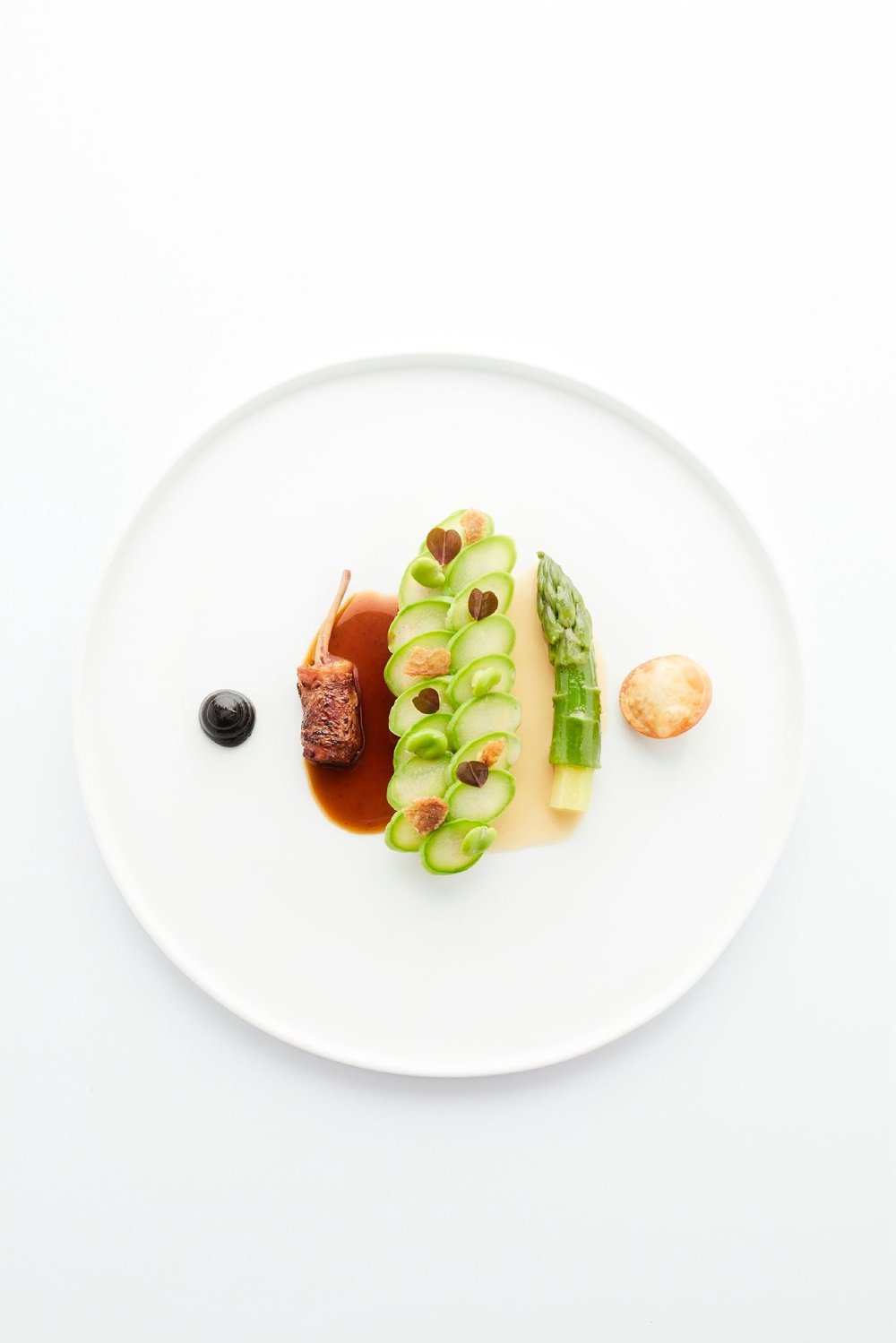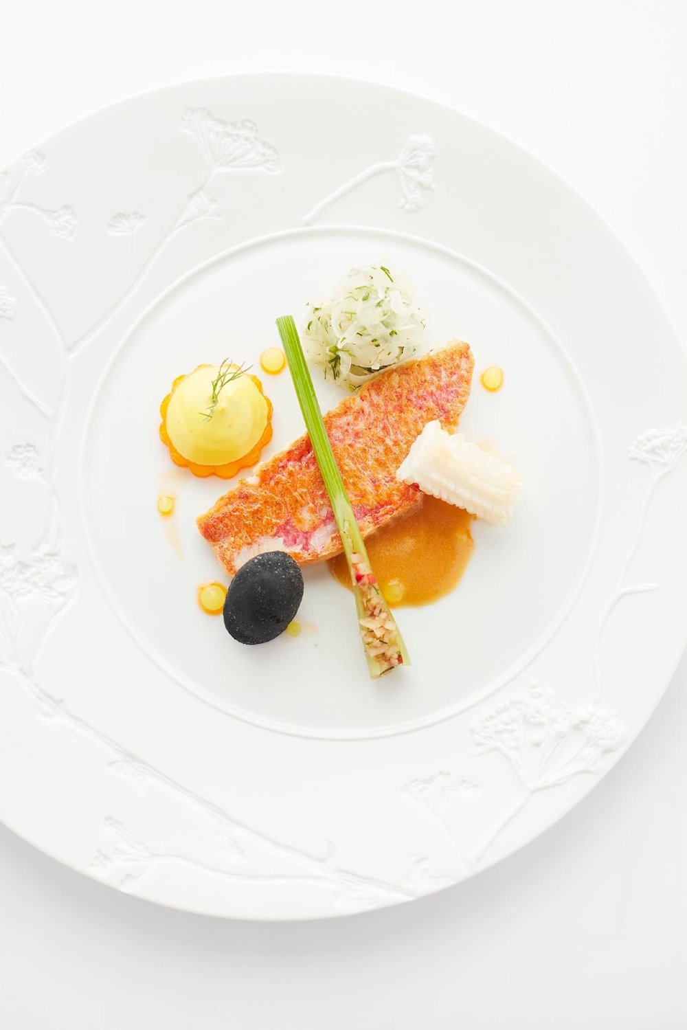 À la carte, on retrouve des créations emblématiques : turbot aux moules et verveine, fleur de courgette farcie à la ricotta, ou encore soufflé au chocolat accompagné de cerises et de glace à la vanille. Les plats traduisent une recherche d’harmonie entre la simplicité apparente et une technique maîtrisée.