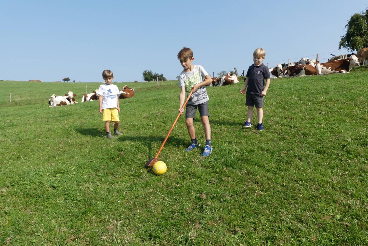 Adapté à tous les âges, l’Agrogolf ne demande aucune expérience préalable. C’est une activité conviviale à partager en famille, entre amis ou collègues, où l’amusement prime sur la performance. La promenade à travers champs et pâturages offre aussi l’occasion d’admirer les paysages vallonnés de Stoumont et de prendre un grand bol d’air.