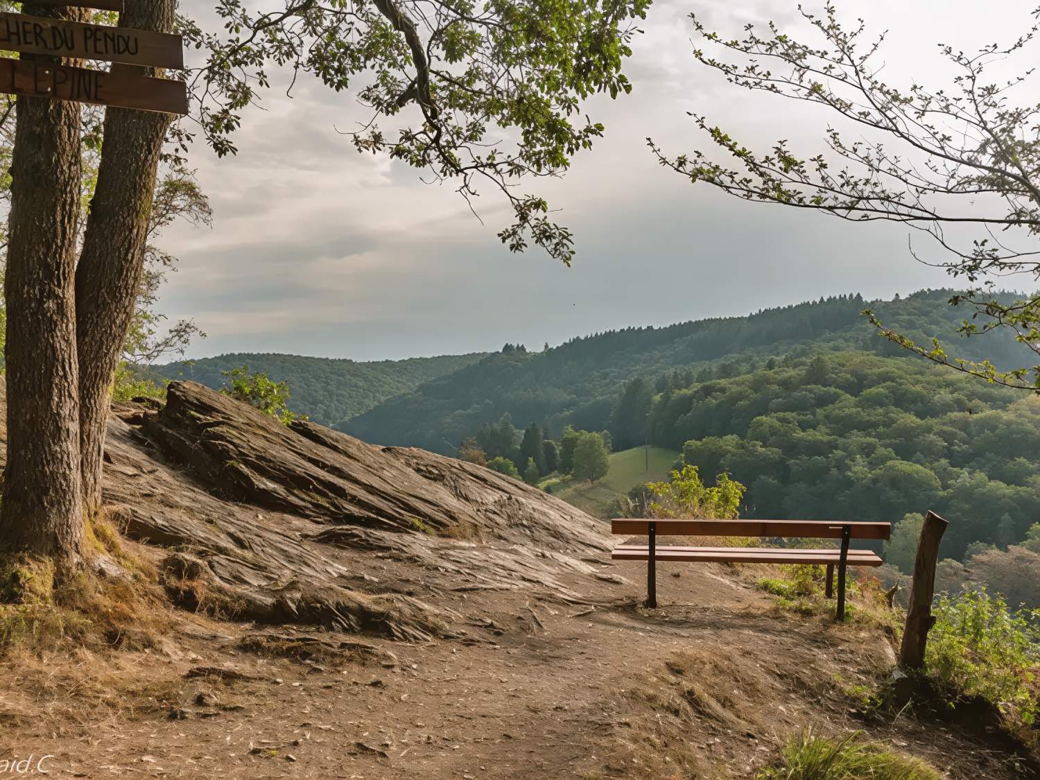 Au sommet, un banc permet de s’asseoir et de contempler le décor tranquille : la Semois sinueuse, l’abbaye en retrait, et les bois alentour.