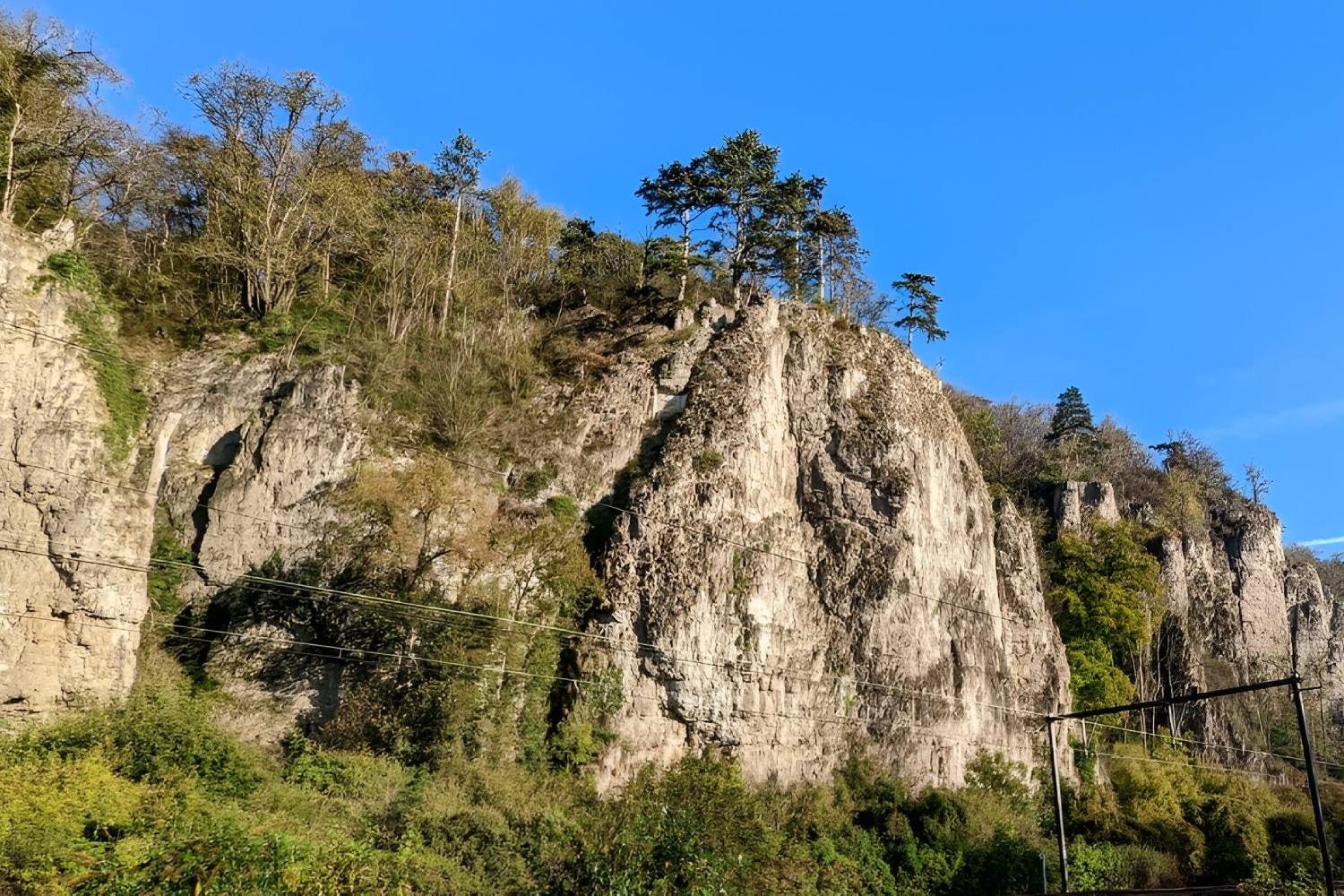 Près de Namur, les rochers de Beez sont une destination de choix pour l’escalade. Ils s’élèvent à 60 mètres de haut, avec une vue inoubliable sur la Meuse en contrebas. Les 230 voies sont accessibles du niveau 3 à 6, et peuvent accueillir jusqu’à 80 grimpeurs et grimpeuses. La plupart des voies sont équipées de maillons rapides, mais prenez bien garde à prendre une corde de longueur suffisante ; certains massifs nécessitent 80 mètres de corde !