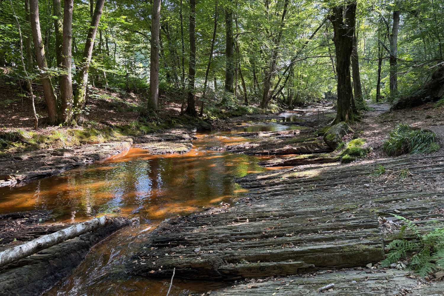 Vous quittez Surister en direction de Noire Foxhalle et entrez rapidement dans les Bois des Récollets, puis du Bois de Goé. La première partie serpente entre forêts et petits cours d’eau, notamment le Rau de la Borchêne, dans un décor typique des Hautes Fagnes.