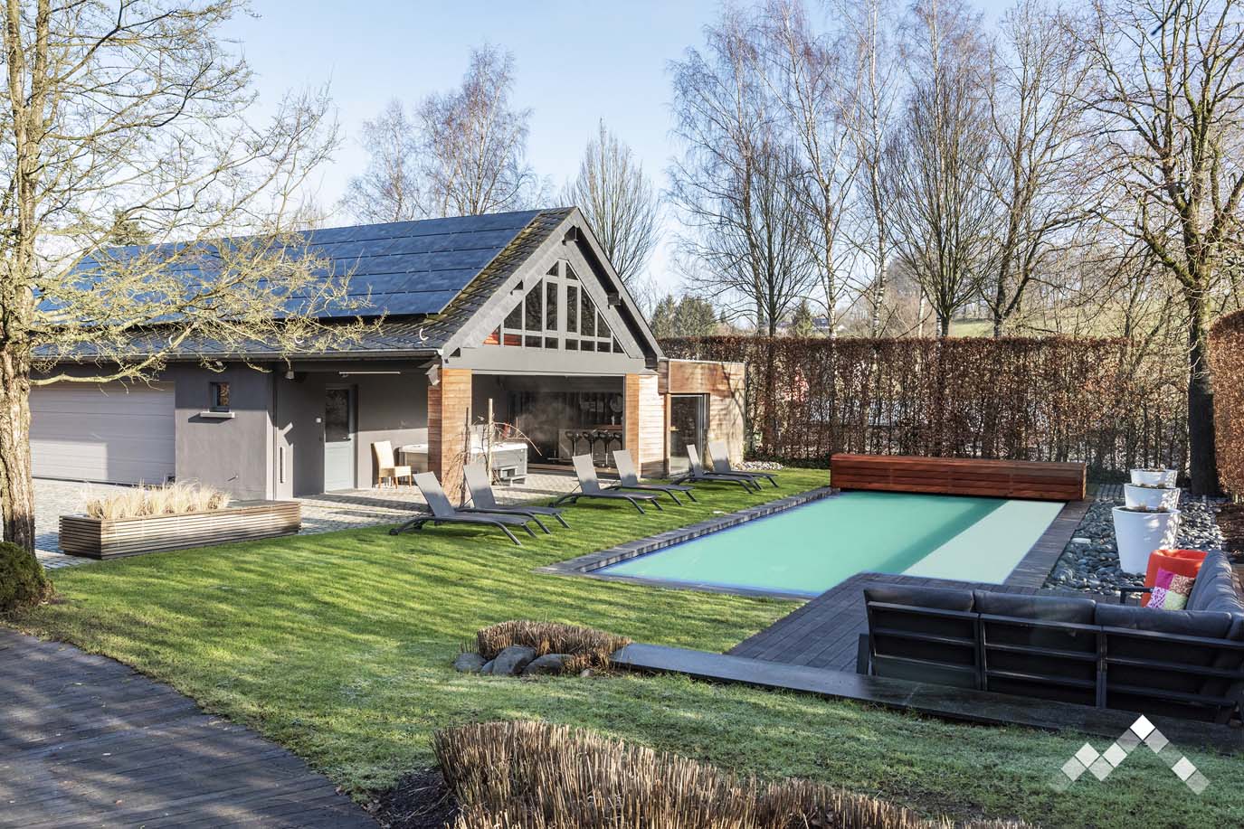 Bien souvent, la piscine va de pair avec une série d’équipements et aménagements de type douche, jeux aquatiques ou encore un poolhouse. Ainsi, outre le plaisir de la baignade, une piscine privée offre une expérience complète récréative, pour petits et grands. Quel plaisir de se disputer une partie d'aqua-volley ou bien de se retrouver au bar après quelques longueurs. Tout cela sans même quitter la propriété de votre résidence de vacances en Ardenne !