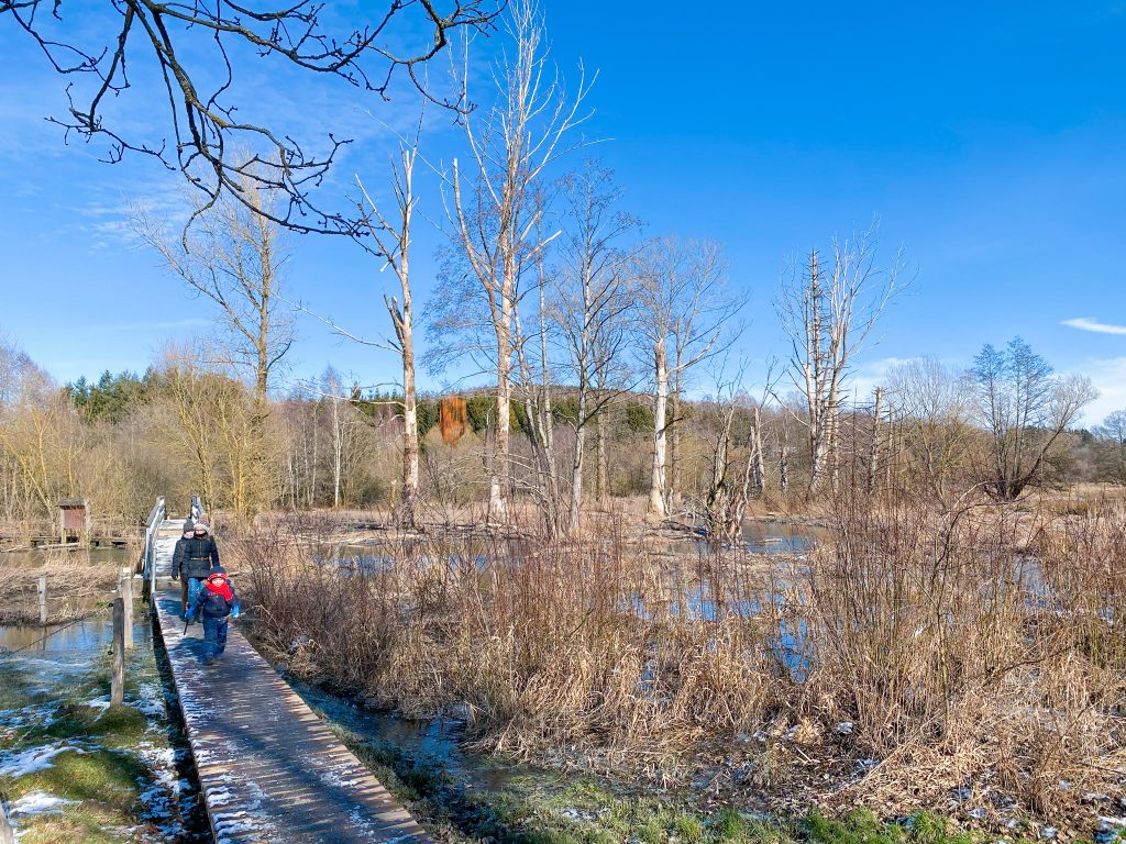De biodiversiteit laat zich vaak eerst horen of vermoeden. Soorten zoals de zwarte ooievaar, de bever, de grauwe klauwier en tijdens de trek de kraanvogel zijn aanwezig. In en rond de poelen leven amfibieën zoals de bruine kikker, de gewone pad en de alpenwatersalamander. Om open zones te behouden, grazen er plaatselijk Gallowayrunderen.