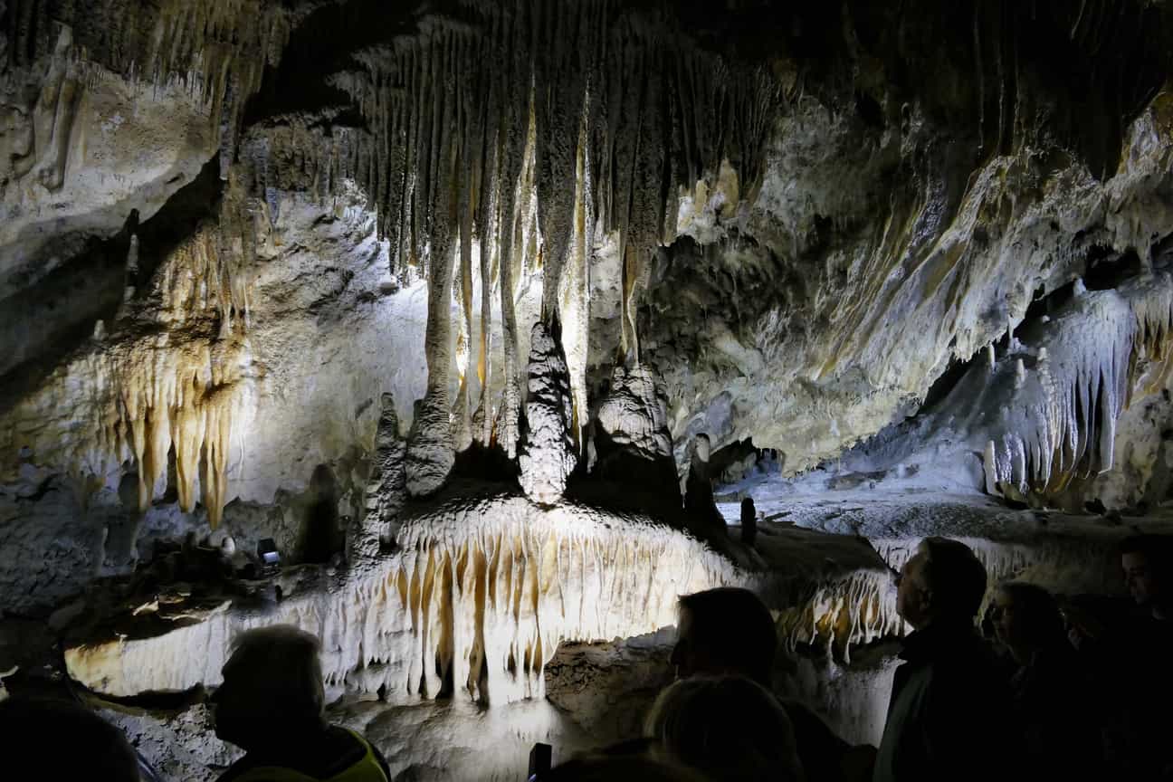 Wanneer u de grotten bezoekt, kan dat te voet of met de historische tram. Onderweg passeert u zalen vol druipstenen, ondergrondse wanden, gangen en gewelven. De lichtshow ‘Origin’ voegt daar een visueel spektakel aan toe dat het geologische verhaal tot leven brengt. In de winter zijn er kleinschalige bezoeken in beperkte groep – een extra troef voor wie het graag wat rustiger heeft.